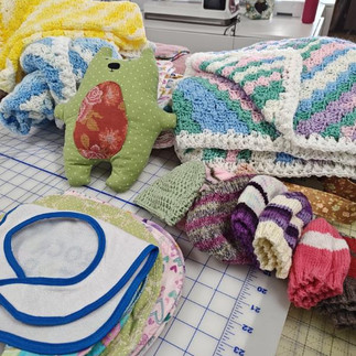 In addition to the quilts, members also donated pillowcases, receiving blankets, crocheted blankets, hats, bibs, stuffed animals, and tote bags.